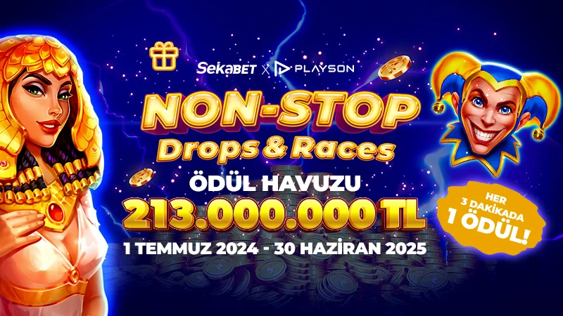 ✩ Playson Non-Stop Drops & Races slot etkinliğinde 1 yıl boyunca her ay üçer etkinlik olarak gerçekleşecektir.