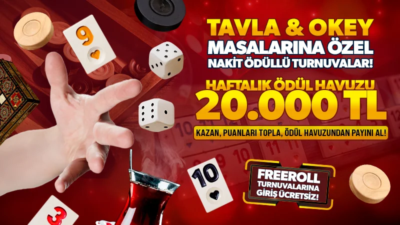 20.30 | Maxi Freeroll Okey Ödül: 500 TL |