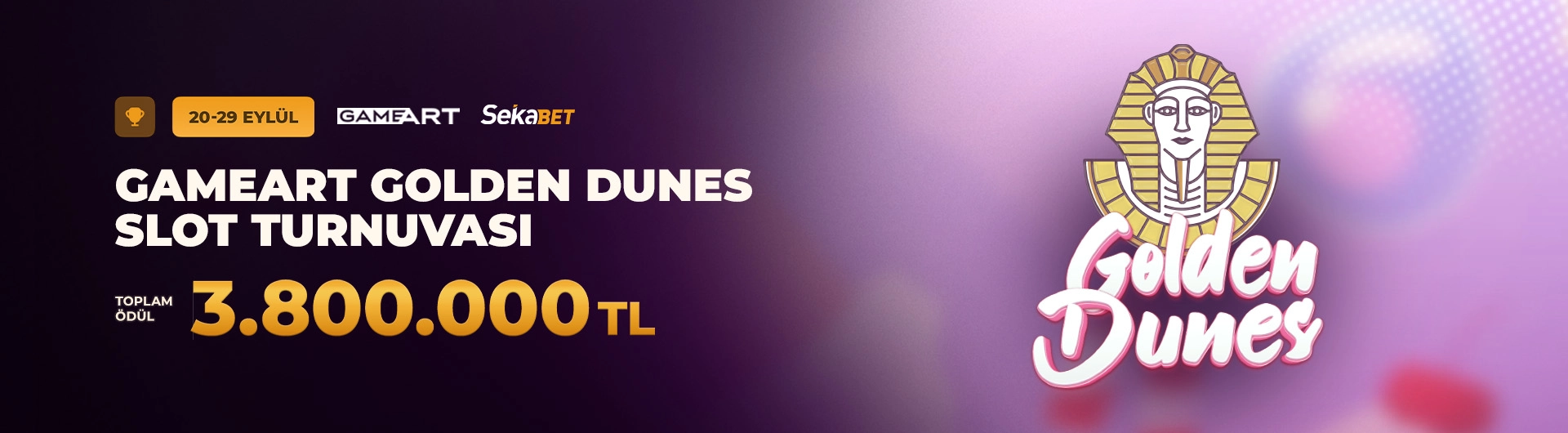 1. GameArt Golden Dunes Slot Turnuvası 20 ile 29 Eylül 2024 arasında çarpan yarışı olarak gerçekleştirilecektir.